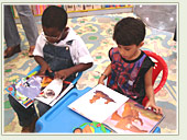 As crianças gostam também de manipular os livros na hora do descanso, após o lanche